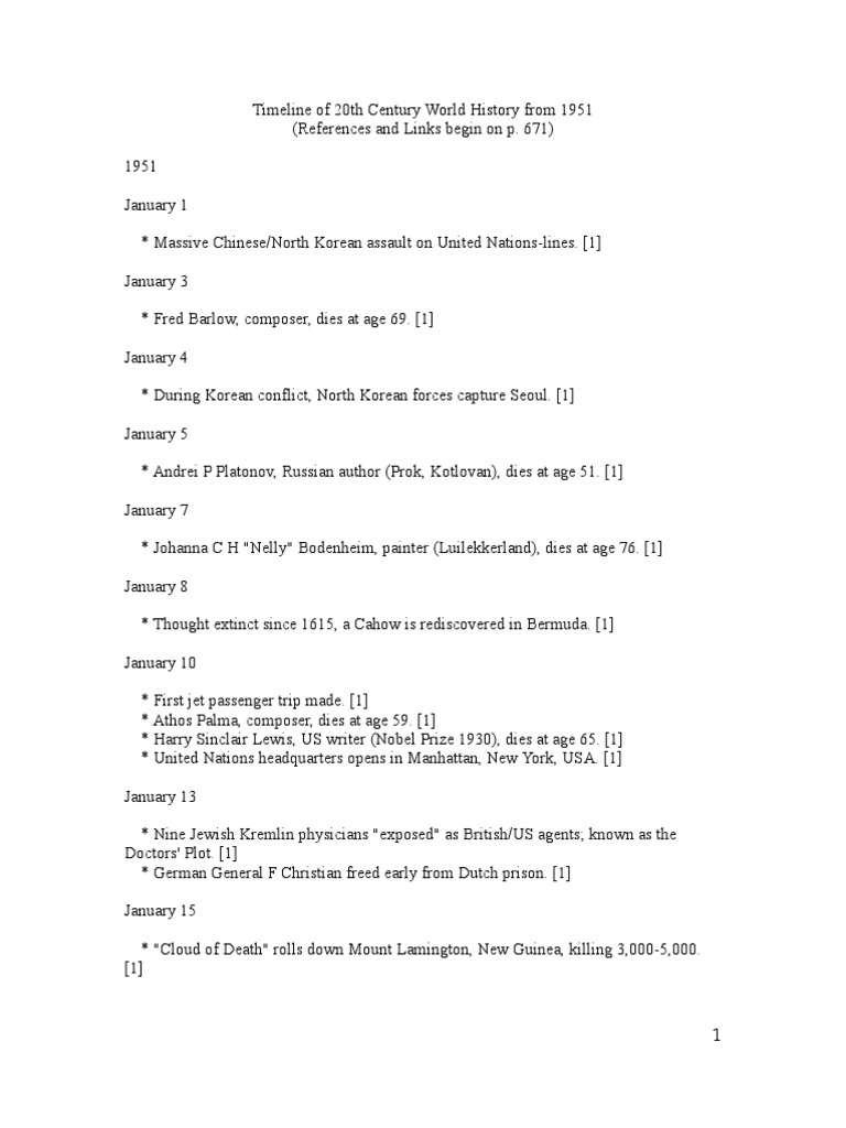 Timeline Of The 20th Century Part Ii 1951 To 1999 Pdf